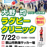 大野均氏をゲストにラグビークリニックを開催いたします。 参加費は無料となっていますので ぜひご参加ください! 2018年7月22日(日)10:00~13:00
